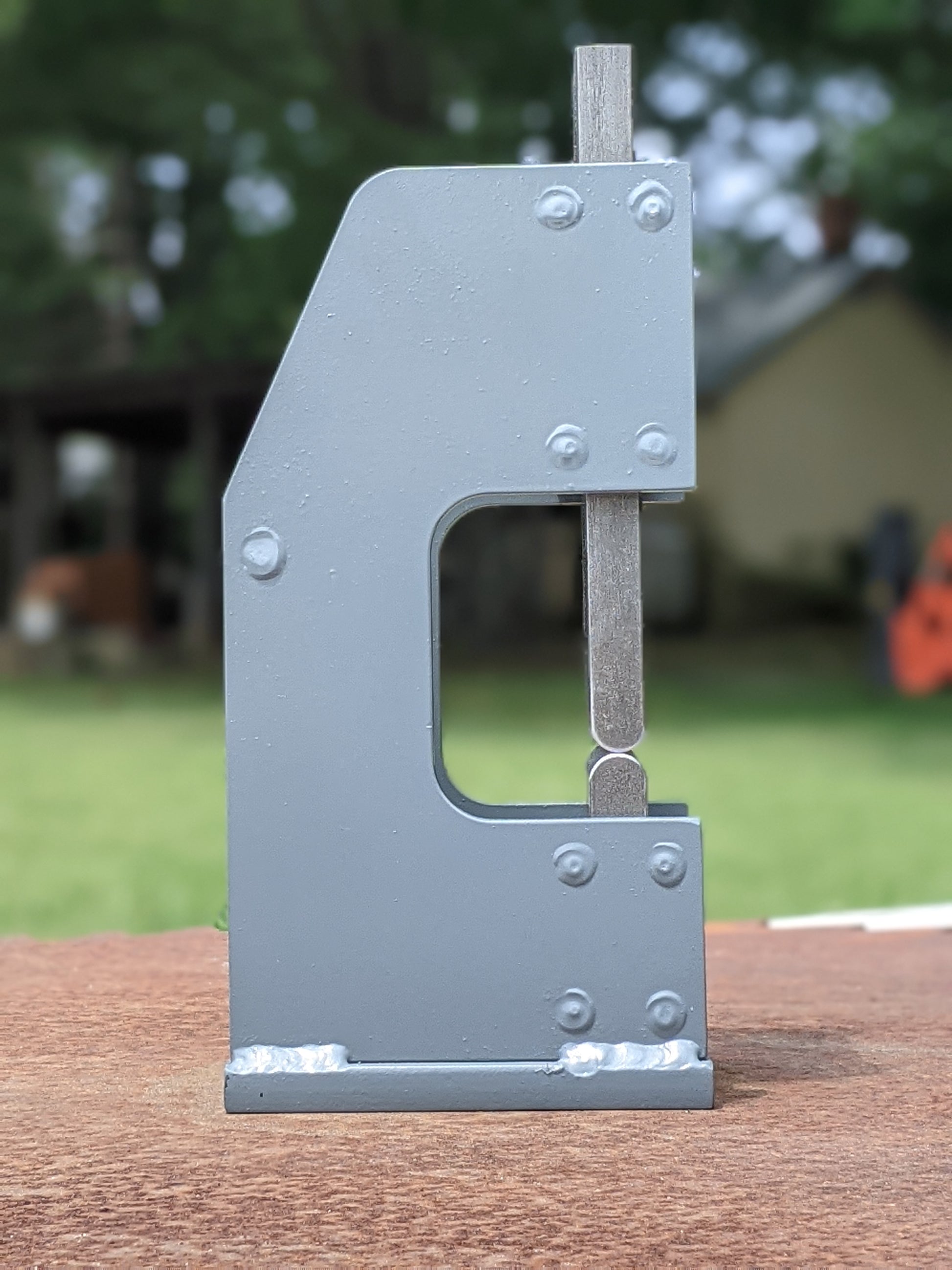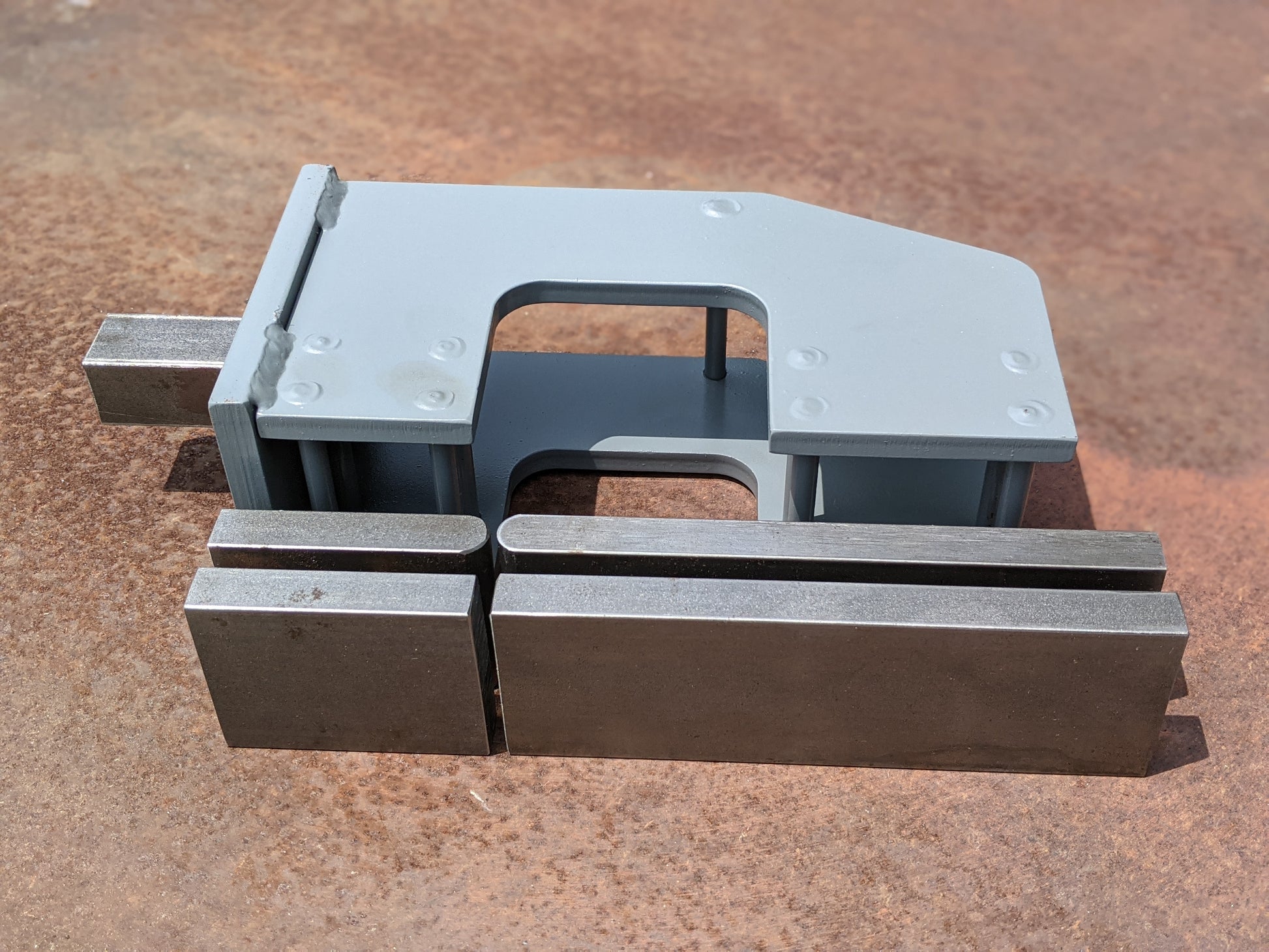 This tool is designed to fuller your piece with the radius dies or forge tenons for round or square shoulders with the flat dies.